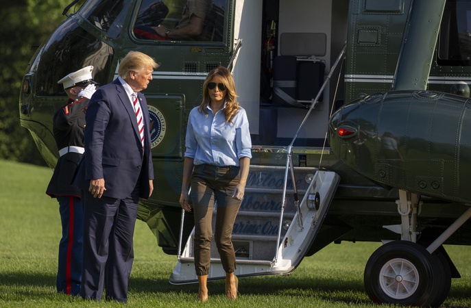 Donald Trump i Melania trzymaja sie za rece w domu do Bialego Domu