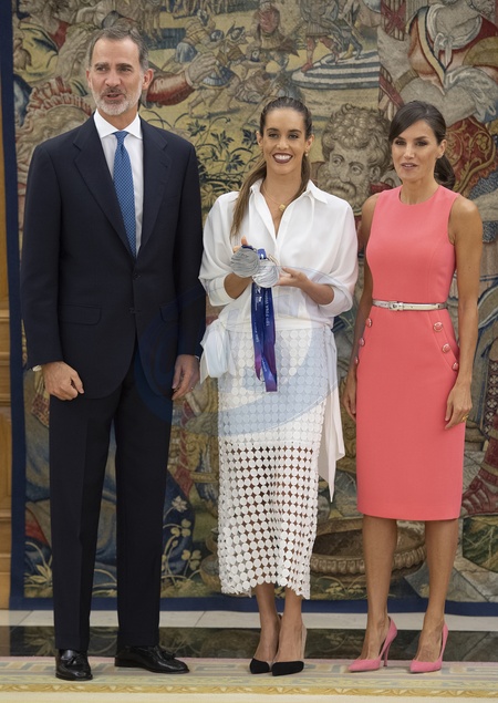 Krolowa Letizia i Filip spotkali sie z hiszpanska plywaczka w Palacu Zarzuela