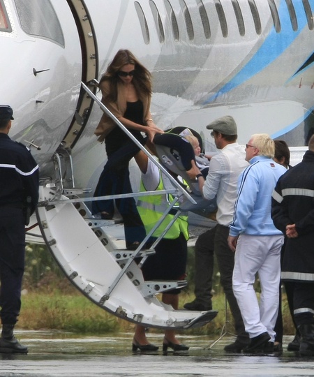 Brad Pitt i Angelina Jolie na lotnisku Brie - Champniers wsiadaja do prywatnego samolotu, Francja