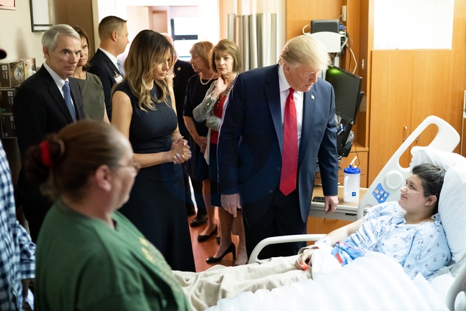 Trumpowie odwiedzili w szpitalu ofiary ataku w Dayton
