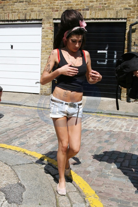 Piosenkarka Amy Winehouse przed swoim domem w Londynie