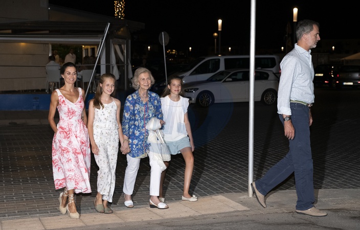Krol Filip z zona, corkami i matka ida do restauracji Ola de Mar