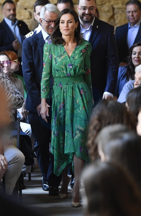 Krolowa Letizia w zielonej asymetrycznej sukience w Szkole w Oviedo