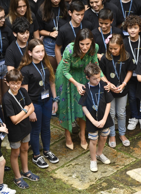 Krolowa Letizia w zielonej asymetrycznej sukience w Szkole w Oviedo