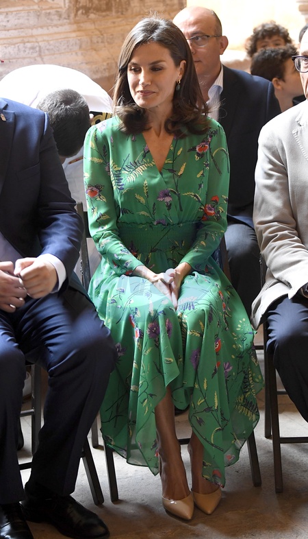 Krolowa Letizia w zielonej asymetrycznej sukience w Szkole w Oviedo