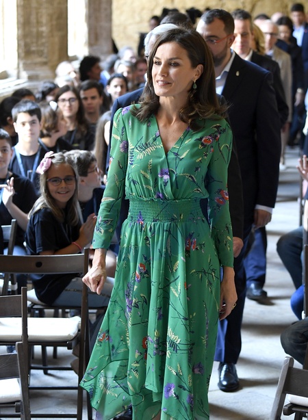 Krolowa Letizia w zielonej asymetrycznej sukience w Szkole w Oviedo