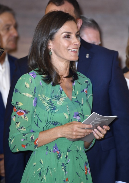 Krolowa Letizia w zielonej asymetrycznej sukience w Szkole w Oviedo