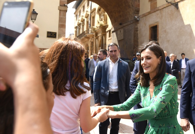 Krolowa Letizia w zielonej asymetrycznej sukience w Szkole w Oviedo