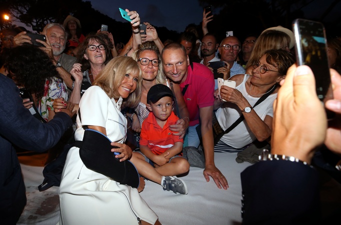 Macronowie podczas wizyty w Bormes-les-Mimosas