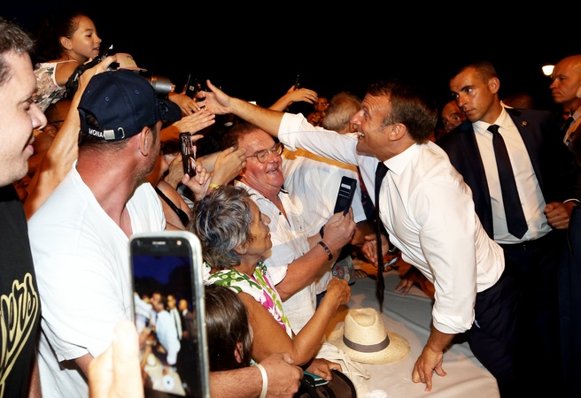 Macronowie podczas wizyty w Bormes-les-Mimosas