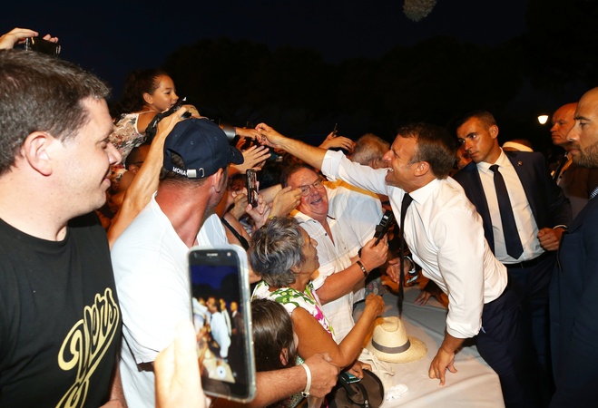 Macronowie podczas wizyty w Bormes-les-Mimosas