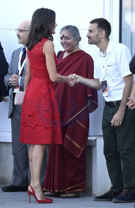 Krolowa Letizia w czerwonej sukience na inauguracji Swiatowego Centrum Zrownowazonej Zywnosci Miejskiej w Walencji