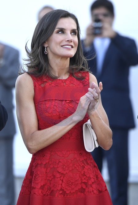 Krolowa Letizia w czerwonej sukience na inauguracji Swiatowego Centrum Zrownowazonej Zywnosci Miejskiej w Walencji