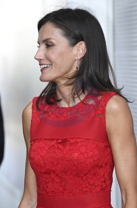 Krolowa Letizia w czerwonej sukience na inauguracji Swiatowego Centrum Zrownowazonej Zywnosci Miejskiej w Walencji