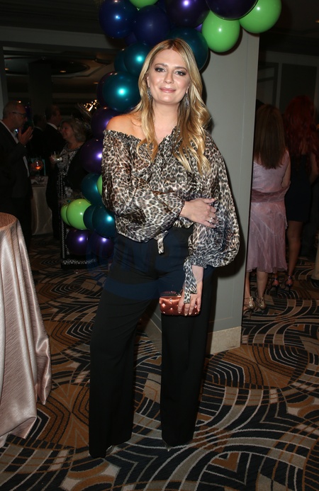 Mischa Barton w cetkowanej bluzce na Flaunt It Awards 2019