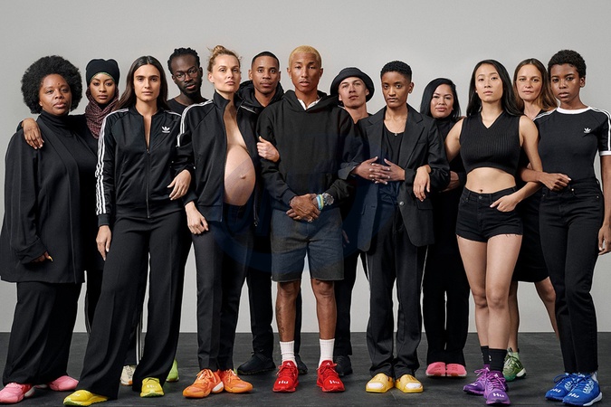 Pharrell Williams z roznymi kobietami w kampanii Adidas