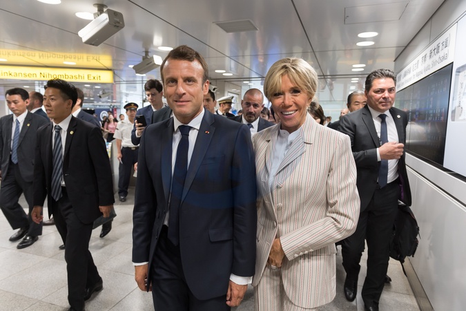 Macronowie na Dworcu w Tokyo