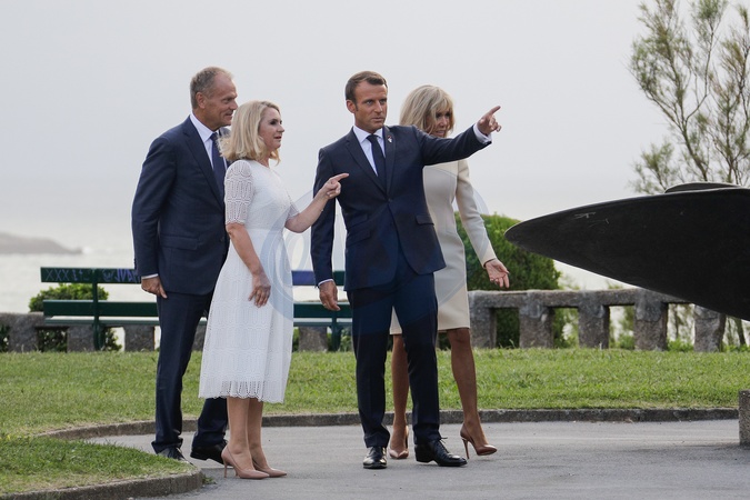 Macronowie witaja przybylych na G7