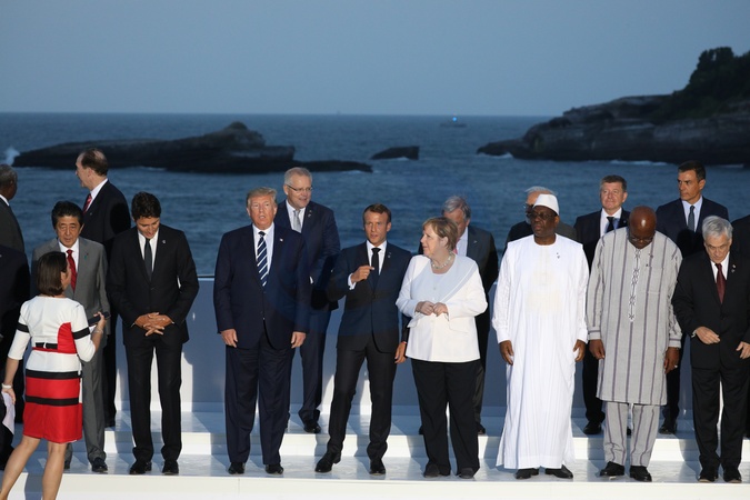 Shinzo Abe, Justin Trudeau, Donald Trump, Emmanuel Macron, Angela Merkel, Macky Sall, Roch Marc Christian Kabore, Sebastian Pinera