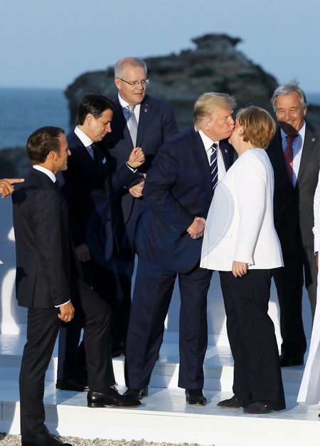 Emmanuel Macron, Donald Trump, Angela Merkel