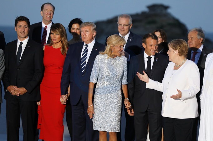 Justin Trudeau, Donald Trump, Melania Trump, Emmanuel Macron, Brigitte, Angela Merkel