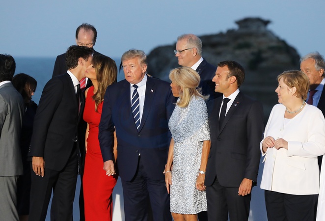 Justin Trudeau, Donald Trump, Melania Trump, Emmanuel Macron, Brigitte, Angela Merkel