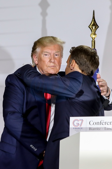 Macron i Trump przytulaja sie na konferencji - Melania na widowni