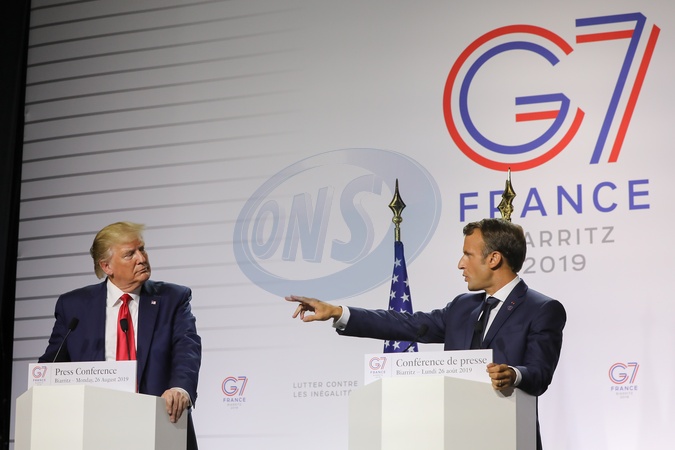 Macron i Trump przytulaja sie na konferencji - Melania na widowni