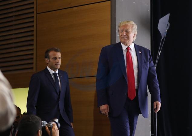 Macron i Trump przytulaja sie na konferencji - Melania na widowni