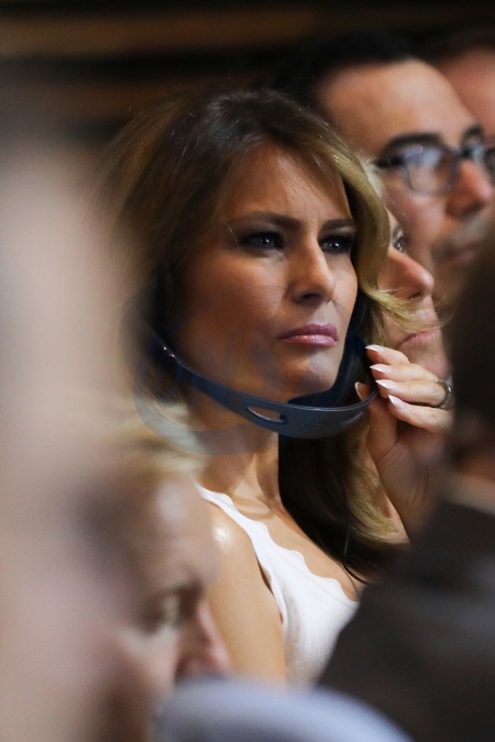 Macron i Trump przytulaja sie na konferencji - Melania na widowni