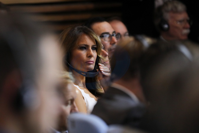 Macron i Trump przytulaja sie na konferencji - Melania na widowni