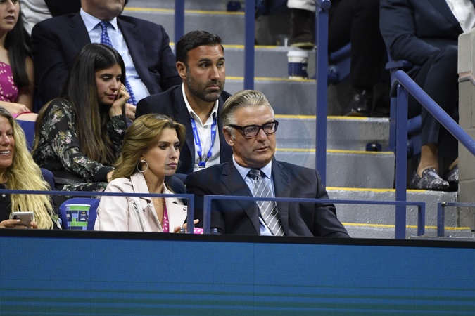 Alec Baldwin z zona Hilaria Baldwin na US Open