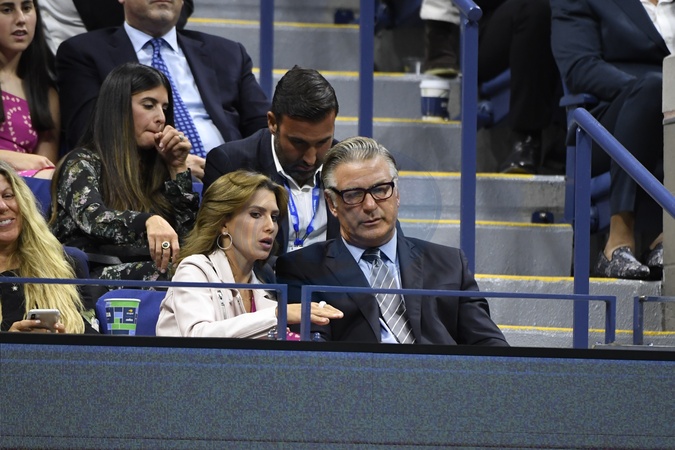 Alec Baldwin z zona Hilaria Baldwin na US Open