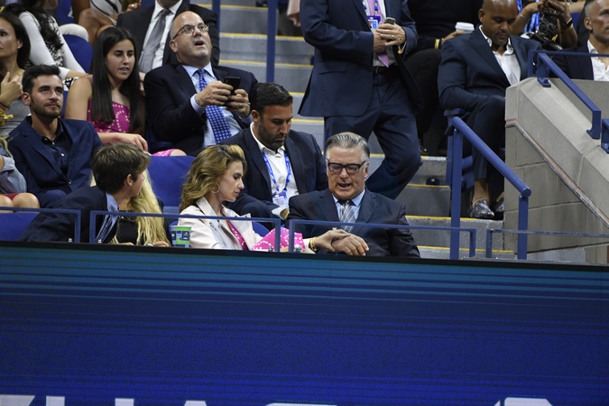 Alec Baldwin z zona Hilaria Baldwin na US Open