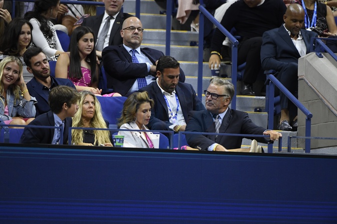 Alec Baldwin z zona Hilaria Baldwin na US Open