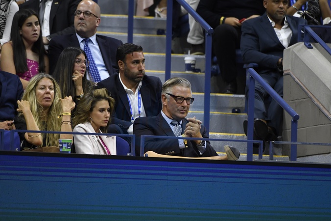 Alec Baldwin z zona Hilaria Baldwin na US Open