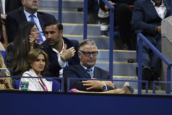Alec Baldwin z zona Hilaria Baldwin na US Open