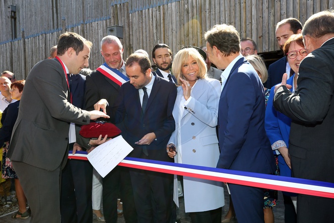 Brigitte Macron ze swoja corka - Tiphaine na inauguracji centrum historycznego