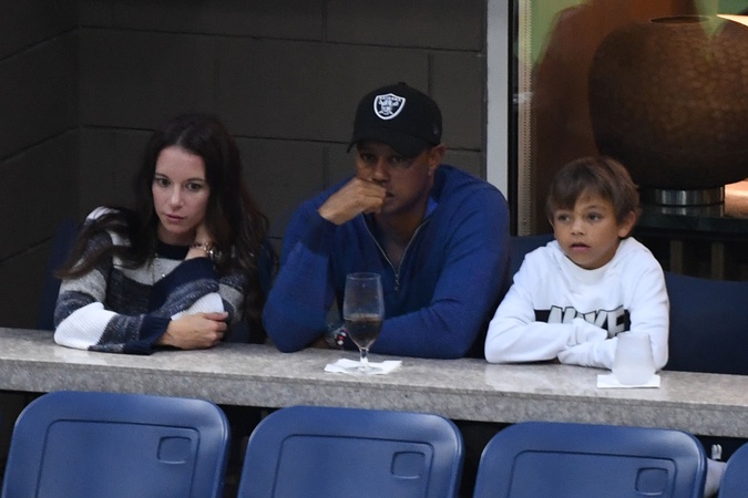 Tiger Woods z dziewczyna i dziecmi na turnieju tenisowym