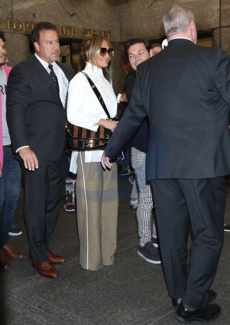 Jennifer Lopez pozdrawia fanow i reporterow przed Late Night