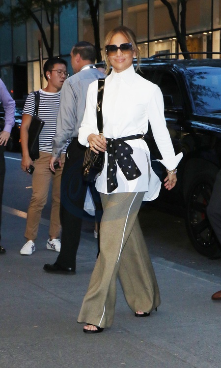 Jennifer Lopez pozdrawia fanow i reporterow przed Late Night