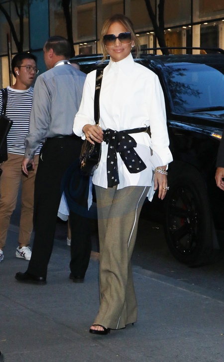 Jennifer Lopez pozdrawia fanow i reporterow przed Late Night