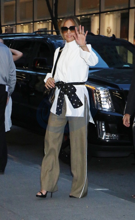 Jennifer Lopez pozdrawia fanow i reporterow przed Late Night