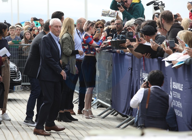 Kristen Stewart w kolorowej koszuli i w rozowej grzywce na festiwalu w Deauville