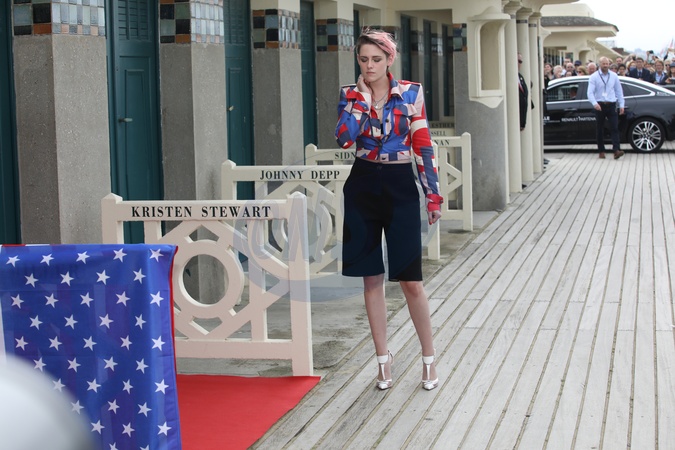 Kristen Stewart w kolorowej koszuli i w rozowej grzywce na festiwalu w Deauville