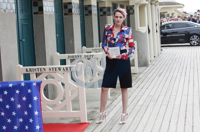 Kristen Stewart w kolorowej koszuli i w rozowej grzywce na festiwalu w Deauville