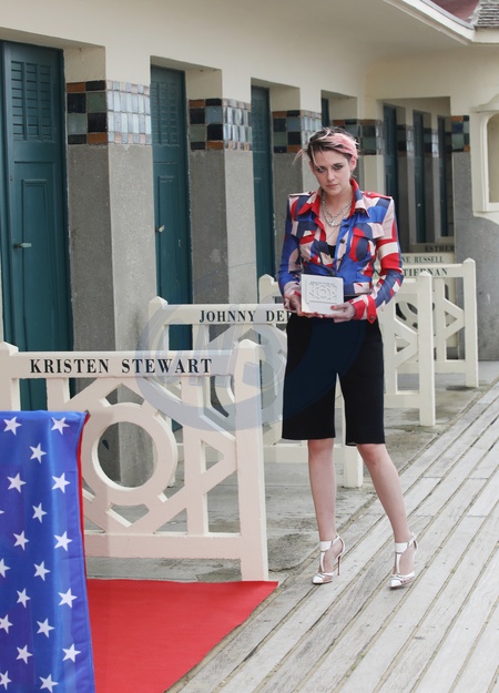 Kristen Stewart w kolorowej koszuli i w rozowej grzywce na festiwalu w Deauville