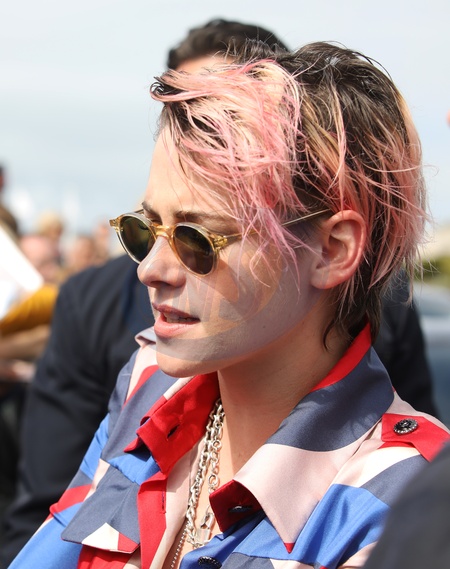 Kristen Stewart w kolorowej koszuli i w rozowej grzywce na festiwalu w Deauville