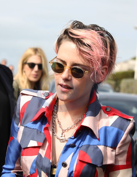 Kristen Stewart w kolorowej koszuli i w rozowej grzywce na festiwalu w Deauville