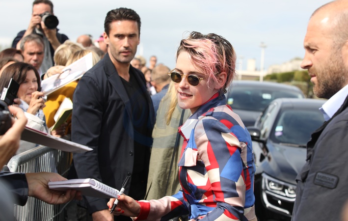 Kristen Stewart w kolorowej koszuli i w rozowej grzywce na festiwalu w Deauville